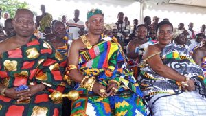 The ceremony, rich in traditional pomp and cultural symbolism, was graced by representatives from the Wassa Amenfi East Traditional Council, led by TetretÉ› Okuamoah Sekyim II. Notable among the delegation were Nana Ampong Kwame Akro I, Nana Ntori Bonkyi Ankomeah, and Omanhene Kyeame Nnu, who represented the Wassa Amenfi Omanhene. Their presence lent the event great significance, symbolizing unity and respect among the traditional councils.
