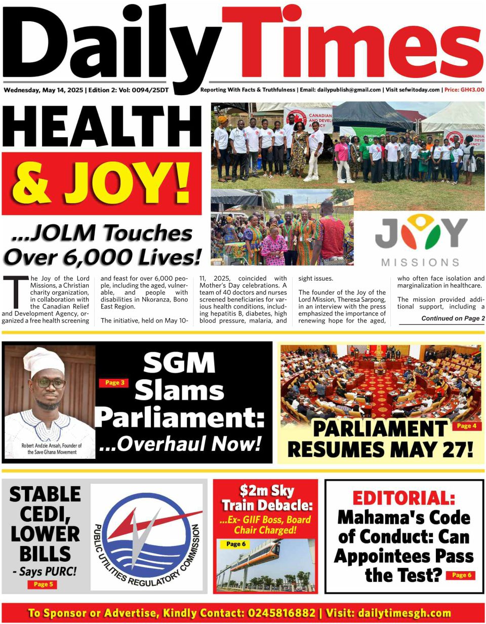 NewspaperWednesday, 14th May, 2025 Edition of Daily Times Newspaper by dailytimesMay 14, 2025May 14, 20250318 Share0 Wednesday, 14th May, 2025 Edition of Daily Times Newspaper Daily Times Vol 0015-25 Friday, January 24, 2025_Layout 1 Post Views: 346